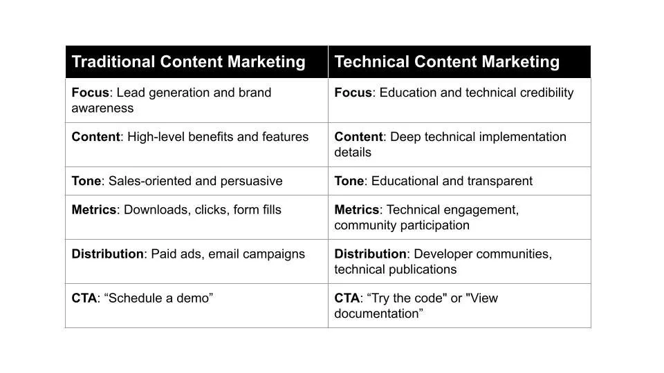 Traditional vs. technical content marketing